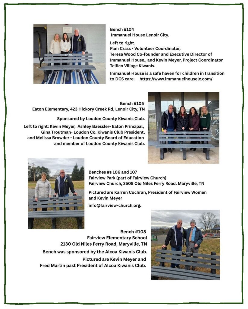 With the program’s success at Highland Park Elementary, Kevin began introducing it to other elementary schools. The results were astounding. By December of 2021, 29 schools in Loudon, Monroe, Rome, Anderson, Knox, and Blount counties had joined the program. Each school proudly owns a Buddy Bench, showcasing the power of community collaboration and environmental consciousness in creating lasting change.