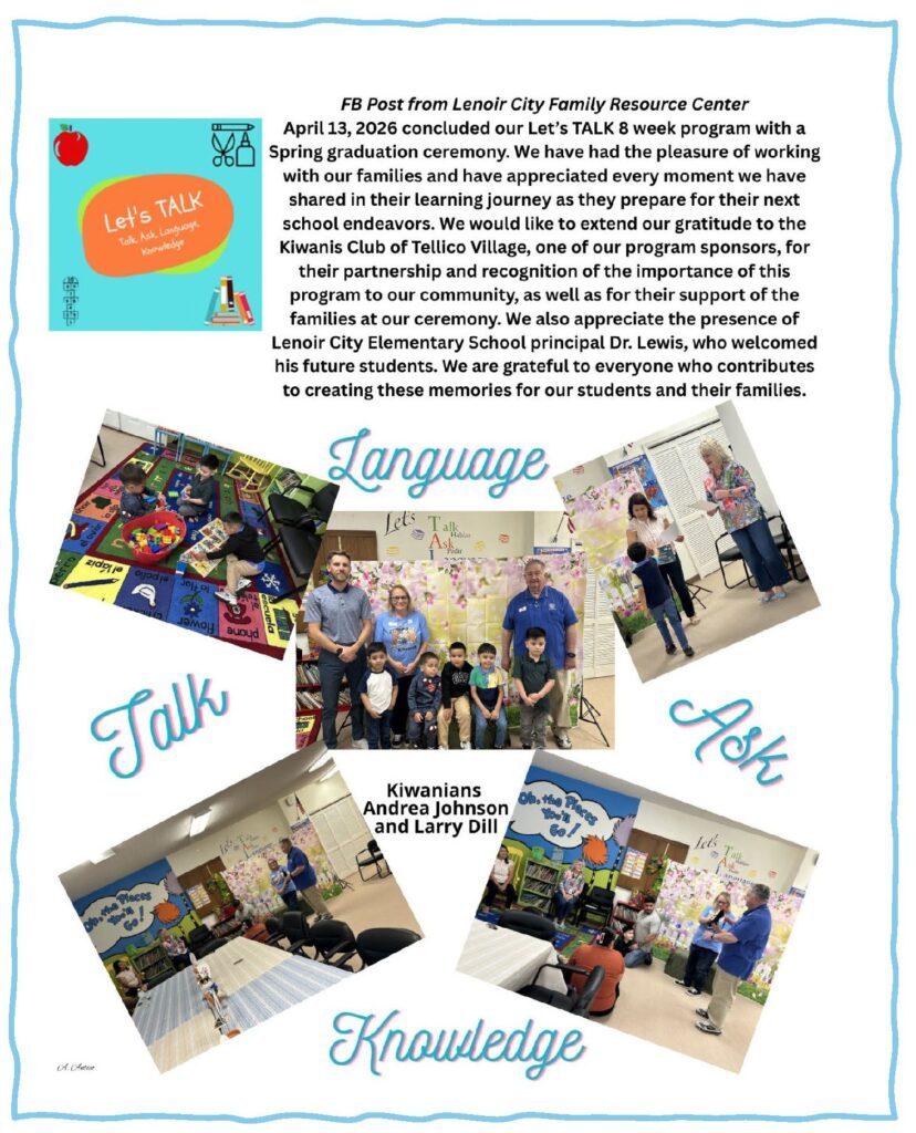 The Lending Library Program at Lenoir City Elementary Schoolis an exemplary initiative designed to promote a passion for reading amongkindergarten students. Every Thursday, resolute Kiwanis volunteers serve aslibrarians. Equipped with a cart full of diverse books, children are given theopportunity to independently select a book that interests them. This processnot only empowers young learners to make their own reading choices but alsoinstills a sense of responsibility as they manage their borrowed books. Teacherssupply folders containing useful reading tips for parents, ensuring that thereading experience continues beyond the classroom into the home. This endeavorfosters an environment that celebrates literacy and promotes lifelong learning.Volunteers dedicate approximately one hour of their time from 7:45 a.m. to approximately8:30 a.m.