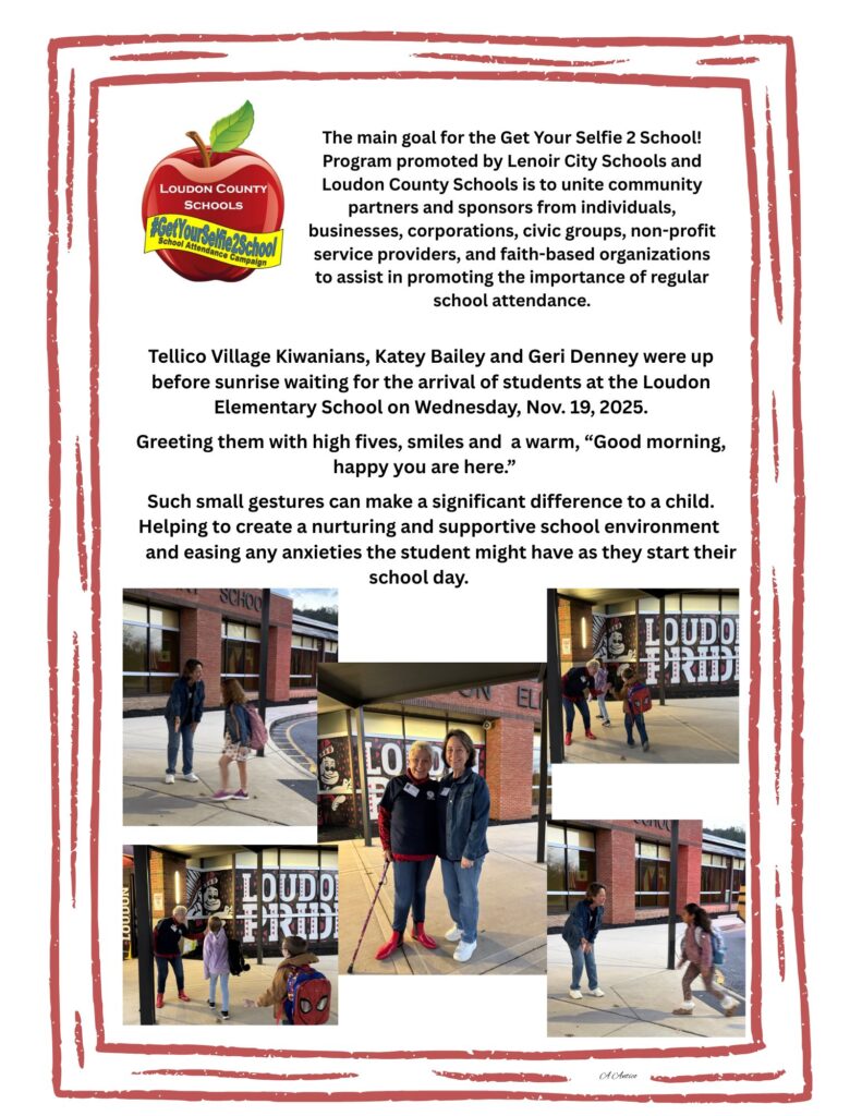 Our club contributes both financial resources and volunteer efforts to this program promoted in Lenoir City Schools and Loudon County Schools. The main goal for Get Your Selfie 2 School! is to unite community partners and sponsors from individuals, businesses, corporations, civic groups, non-profit service providers, and faith-based organizations to assist in promoting the importance of regular school attendance.