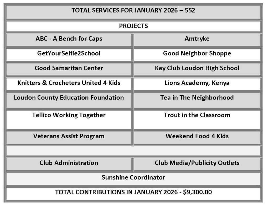 2026 Service Hours and Contributions
